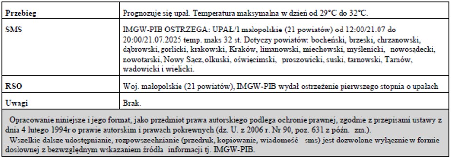 Ostrzeżenie meteorologiczne nr 177 - Burze/1, Upał/1
